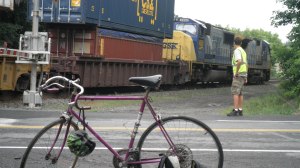 These railfanners, some with out-of-state plates, pull over and set up tripods to capture it all on video – from the moment the train enters sight around the bend to the time it disappears in a shrinking pinpoint down the straight track at the other end. I want to ask the railfanners from Vermont and Massachusetts if they have trains in their own states, and if so, why they drive all this way to see ours. Is Voorheesville a famous hotspot among railfanner elite?