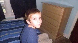 He also loves to sit on my lap at the computer and watch videos. For a long time he begged for “the ocean” and I’d play short videos taken in Cape Cod of him romping in ocean waves. When he was younger he liked Disney, Wiggles, and other kids’ websites; nowadays I like to play him YouTube music videos by They Might Be Giants and Schoolhouse Rock — but ultimately egotism prevails; his all-time favorite computer activity is to watch himself watch himself on video. I know that’s confusing but it’s also the truth. He wants to watch a video in which he watches himself in my dresser mirror while he sings a Guster song. Of course he doesn’t have an ounce of modesty or self-consciousness about this self-absorption, which is funny to see.