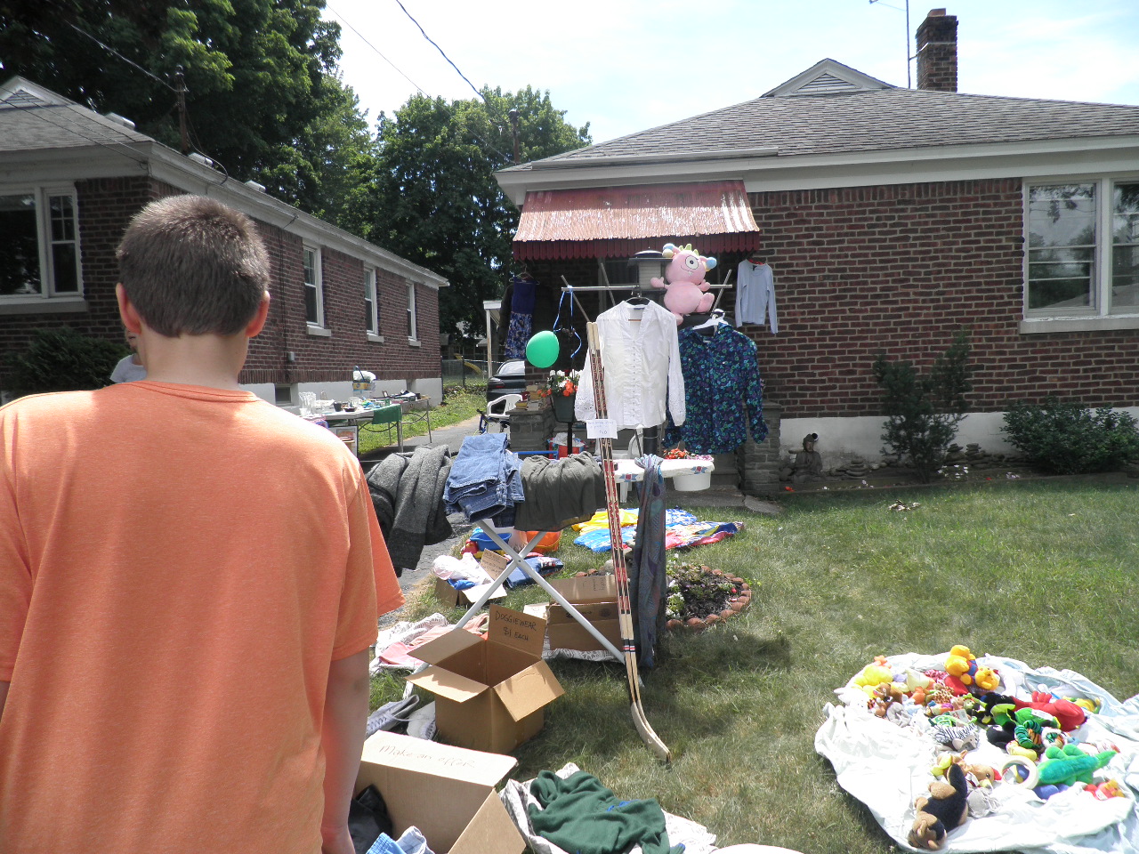 I tried to stay enthusiastic and friendly throughout the day. “Welcome to my highly negotiable garage sale!” I shouted like the ringmaster at a circus. “There’s free cold water in a cooler here,” I gestured in tour-guide fashion, “and a cooling station along this wall.” (which was actually a sprinkler, set on low, that I looped over our energy meter).