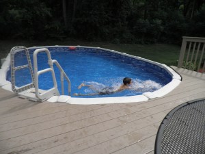 On Saturday Andy drove Jonah up to my mother’s house.  It looked so threatening in the sky – about to rain, about to rain.  I begged God:  please hold off the rain until he gets a chance to swim (in my mother’s neighbor’s pool).  And then the rain did hold off so he could swim, and Jonah asked for train and we did see a train, and we ate sandwiches and chips and drank black soda.