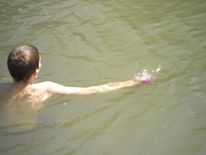He dropped his purple “octopus” in the river and then just pointed to it. “Go get it!” I told him…