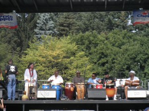Then I walked around and bought some trinkets for M’s kids, and climbed a hill to hear the band and dance in the sunshine, toward the back of the crowd, all of us enjoying amazing Latin music in the big, wide field.  I danced like I was at a Grateful Dead show, because that’s really all I’ve got in my inventory.  But only for one song.  Heh.  Getting old.  Plus I was just sick two days ago.