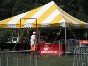 I saw the Marines were there and tried the pull-up bar, which I jumped 5 times to reach, but eventually realized it wasn’t going to happen.  Look at the picture – the bar was about 10 feet high!
