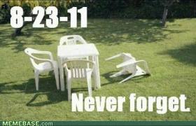 2.  It is the first anniversary of the D.C. earthquake that we could feel way up here in Albany, NY.  You know, the one which caused virtually no damage whatsoever.