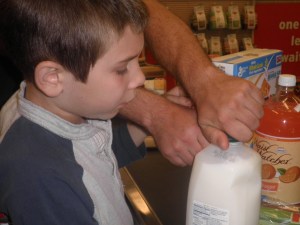 Once again we kept the grocery store rotation in the mix. Jonah did really well, if you forgive him eating while shopping (we always pay for whatever it is) and the opening of the milk and drinking from it at the register.
