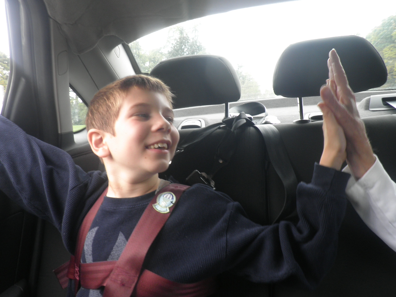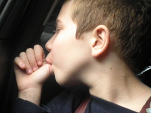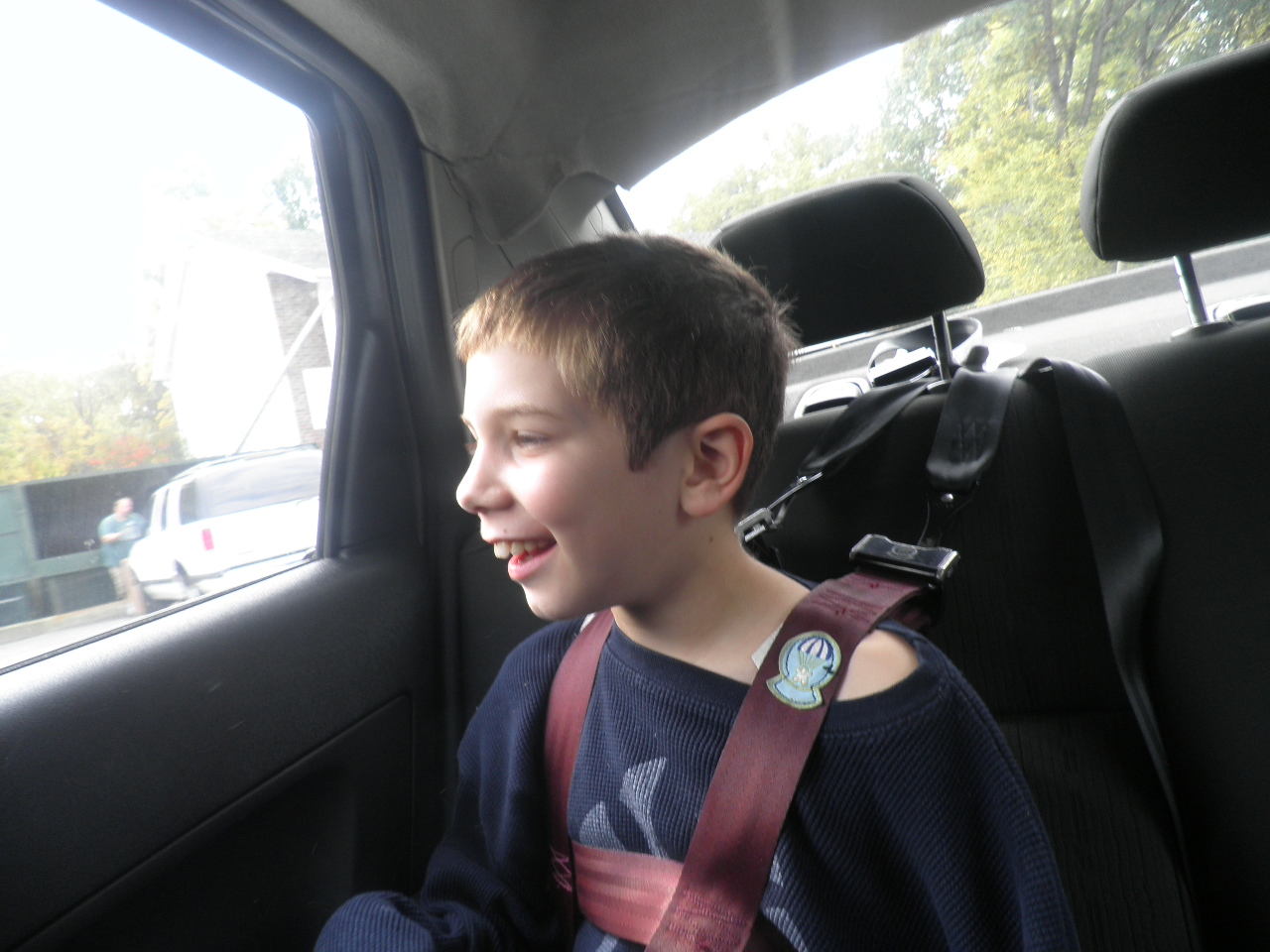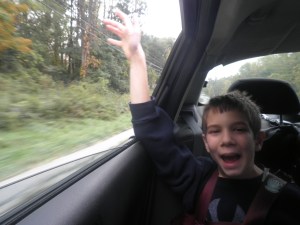 Boo was so very sweet and funny today. His only real transgressions were screeching in my face and trying to cop a feel. There is a code language he sometimes half-sings to himself as he moves in for the squeeze, some syllabic elven tongue. Other times it’s just “boobie.” You’d think I nursed the kid until he was 6. It’s hard to stress about having to remind him, even over and over, hands to yourself, when he could instead be trying to pull my hair out or smearing shit on my mom in the backseat. You pick your battles.