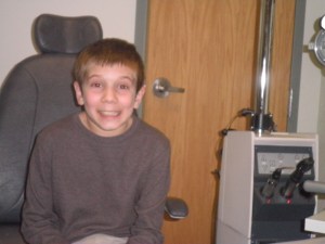 My brave, wonderful boy. They drove him up again today for a follow-up visit with the doc/surgeon, and this time my dad came with us. Jonah was amazing again. He read the eye chart and held the little black instrument to each eye (and yes, he tried to cheat again), he put his little chin into that scary eye machine, he tipped his head back for the eye drops, and he was calm through examinations with scary looking instruments. To be honest, he is better at the eye doctor than I am. I hate having drops put in my eye, and when they don’t explain to me what’s happening and what exactly they are going to do to me, I get physically sick.