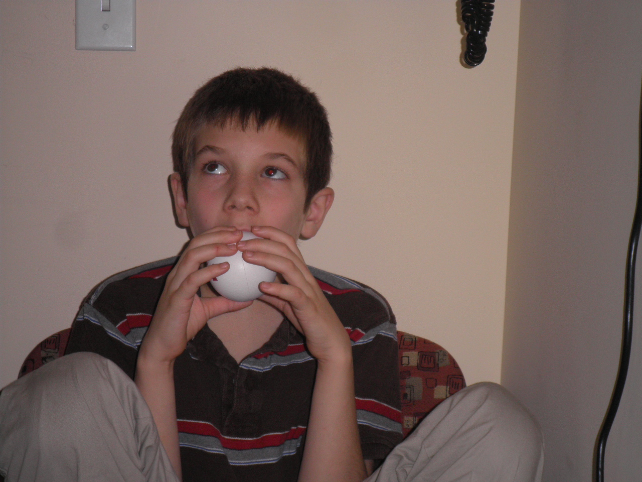 Strike three. Jonah breaks away from me and runs to one edge of the far side of the room, where the wall-length radiator begins. First he gets a good, quick visual on the scene and then he places his maraca on the bars of the radiator and runs up and down the room – Bat-a-bat-a-bat-a-bat-a-bat-a-bat-a-bat. You get the idea. By the time it was over I was practically sobbing. Oh my God what is the matter with my boy? I’d never seen him in the context of a bunch of other kids his age, all doing the same thing — he being the only one who couldn’t, or wouldn’t.