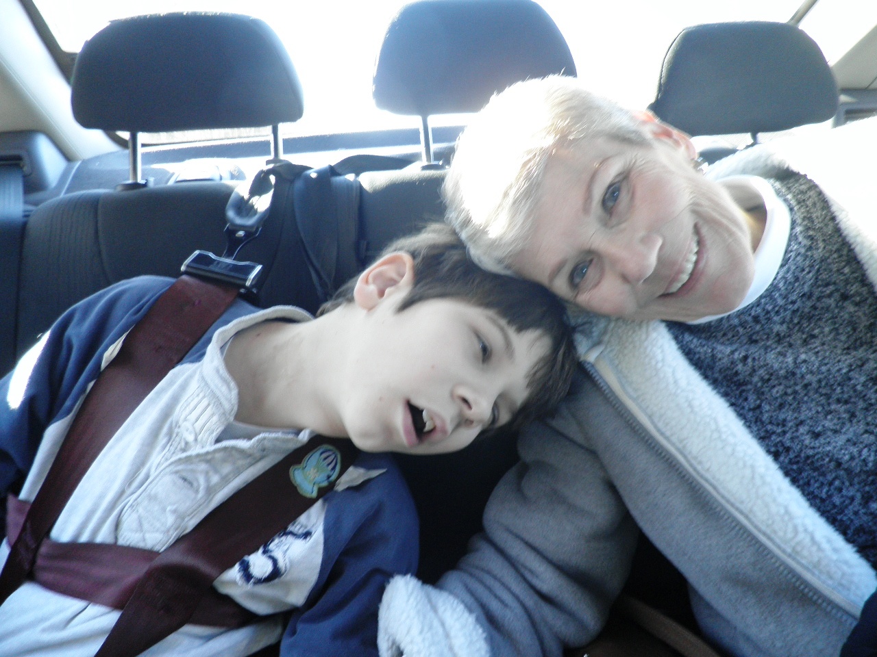 Today was better, at least during our visit. Two direct caregivers walked Jonah out to Andy’s car to avoid the recent attack-mama-or-daddy-as-soon-as-they-walk-in-the-residence pattern. One of them told me Jonah’d had a severe aggression about an hour prior to our arriving, so we set forth with trepidation…but despite much kicking and multiple pull-overs, Jonah was better for us than he has been.