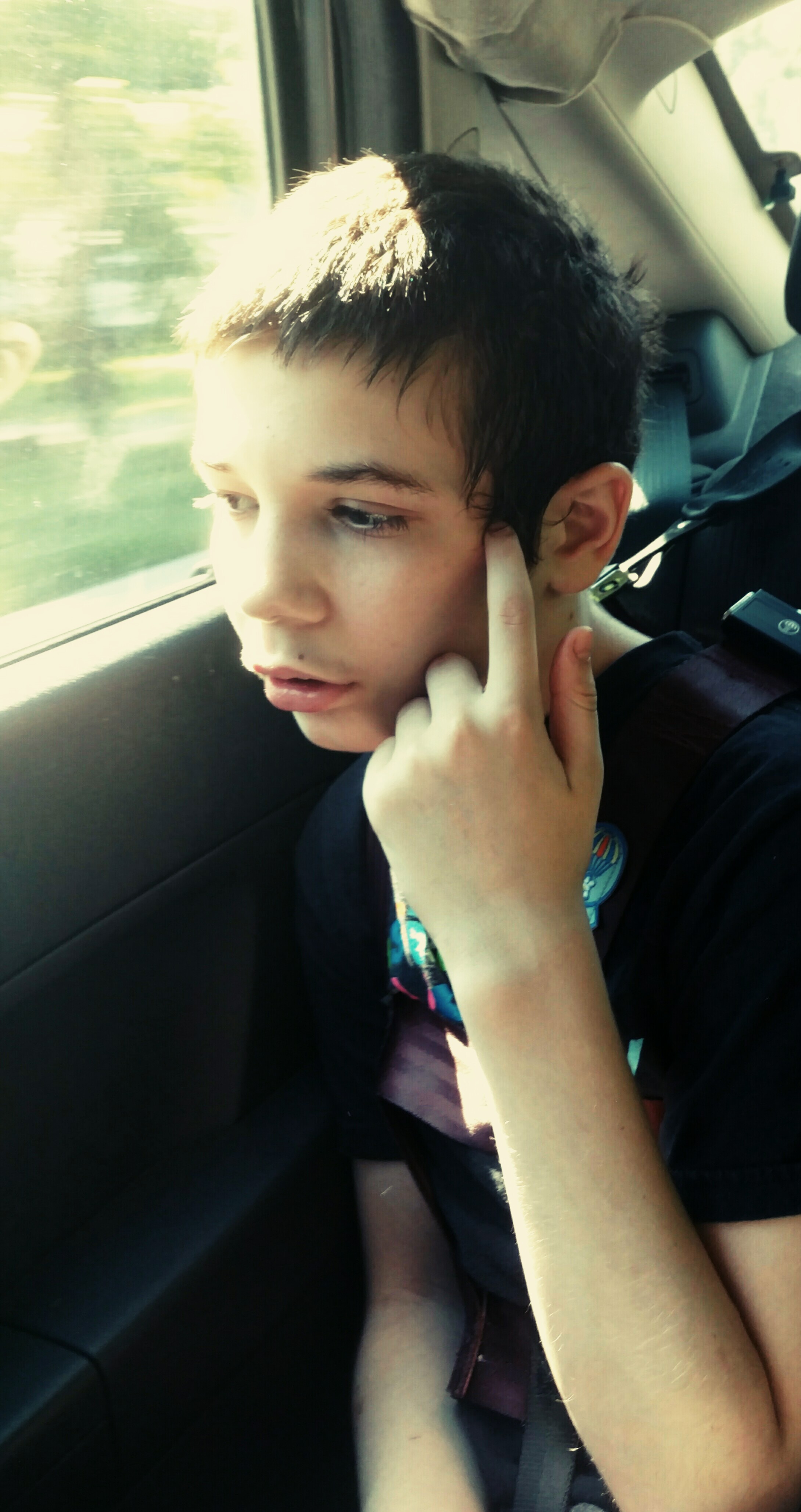 Also, it was a blessedly cool day and we stayed with the group, which made it a lot easier and less stressful. I wish I hadn’t persuaded him to get on the rides, though. As soon as we were settled on the Ferris wheel, he grabbed each of my hands in his and told me “it’s okay. It’s okay. It’s okay.” I smiled at him and said “yes, bunny, it IS okay” – but I felt bad. He bravely endured the brief spin, but after that I didn’t encourage him to ride anything else.
