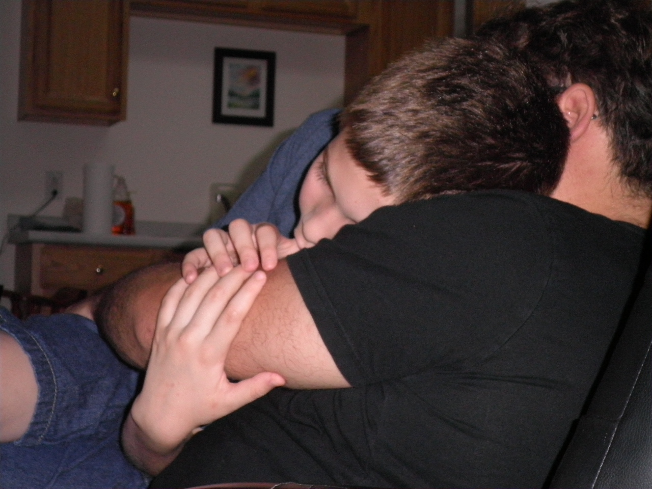 Jonah’s sitting on grandma’s counter in this picture, taken Christmas Day. I was sick and kind of weak; I tried to get a good picture of them standing side by side, but to no avail. I wanted to show how Boo’s only a few inches shorter than my mom now, which would make him about 5′ or 5’1″ at not-yet-thirteen. His growth seems to be happening, somehow, more quickly than before, as if I’d looked away for months and finally turned around to see him.