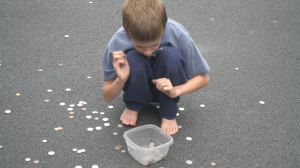 After the park and the bonus-train, we visit Grandma Jane and Grandpa Jim’s house, where Jonah dumps the remaining moneycoin, this time in their driveway.