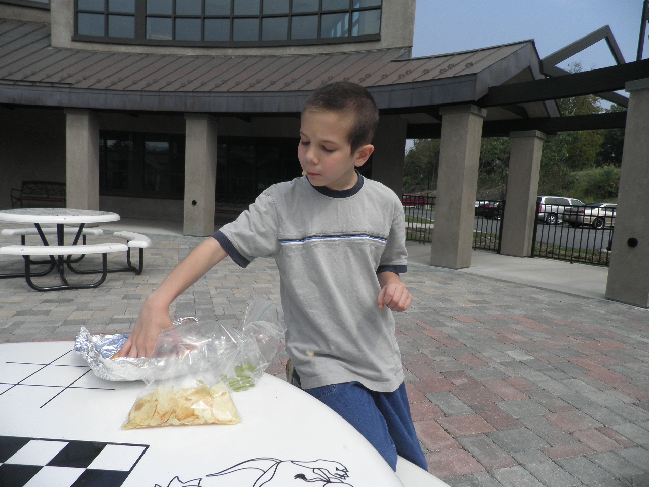 We ate tuna fish sandwiches, potato chips, and yummy-grapes in the humid mugginess of noontime.