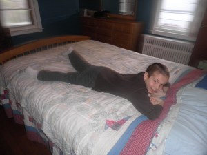 There’s no sitting down and eating it, you understand, without thrown food and overturned dishes, splashed drinks and a constant Jonah-vigil not worth attempting anymore. Jonah showed little interest in the Easter basket grandma filled with bubbles and chocolate, jelly beans and spinning tops, running instead up the stairs, down the stairs, and up again into the spare room where he jumped on the bed screeching.