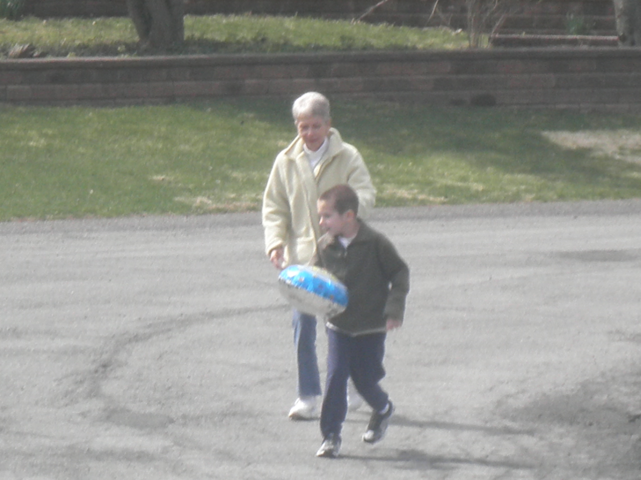 Besides, Easter doesn’t feel much like Easter this year. My mom, God bless her, made a big ham dinner last night and separated it all into Tupperware and packages, some for Andy and Jonah and some for M and me. Today when M and I watched Jonah, we saw the train and stopped at grandma’s to visit and pick up our share of her Easter feast.