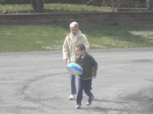 I will not remember today as Easter so much as the last day of Jonah’s vacation. Tomorrow he’ll probably be a hellion at school, but he wasn’t so bad this week, as long as it must have seemed for Andy. Jonah adores his daddy, after all, and when he’s home on break his routine is filled with no-pressure stuff like car ride and grandma and peanut butter roll.