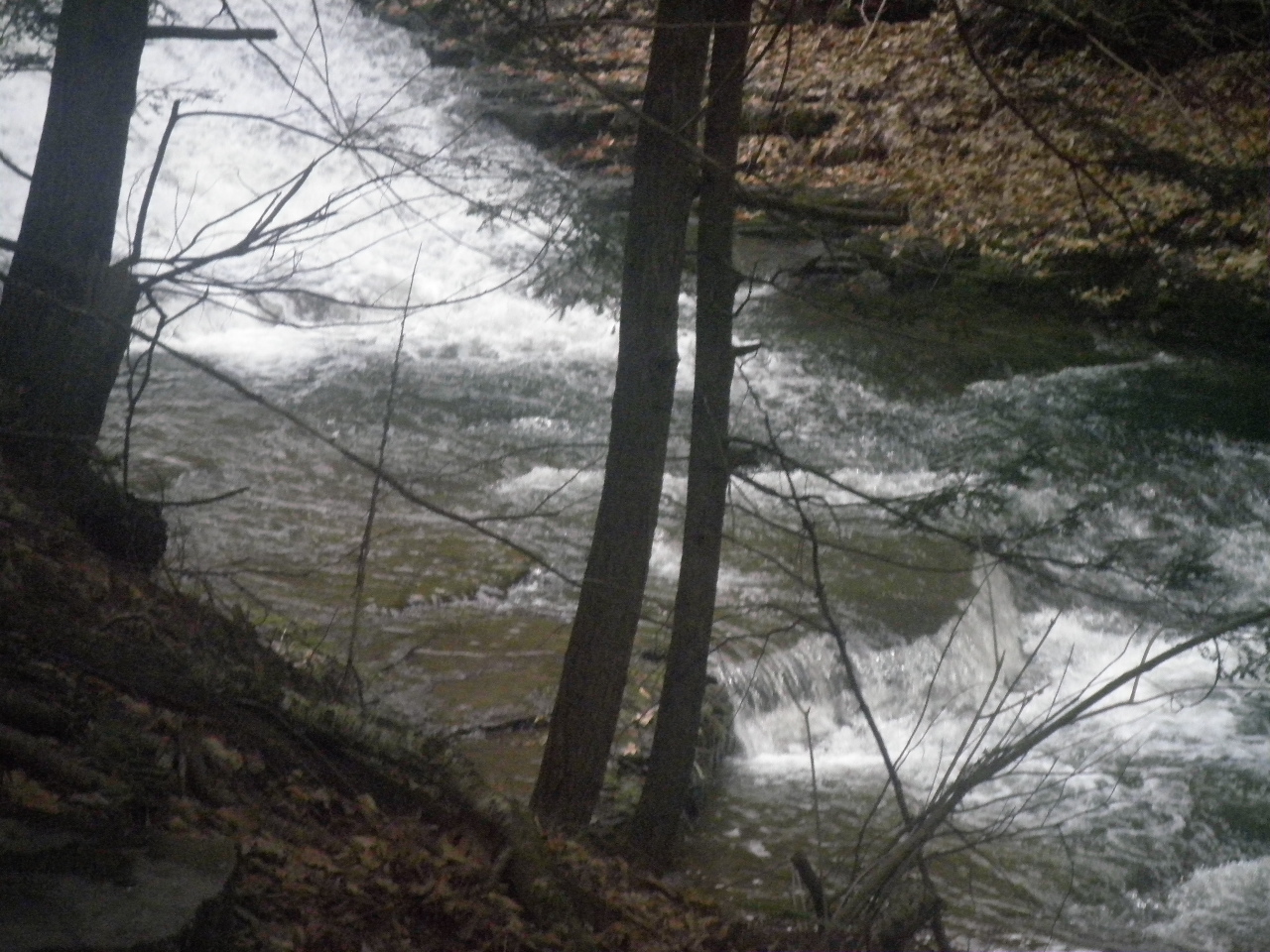 M and Jonah and I ended up at the Rensselaerville Falls, as usual; it is much warmer now and the snow has melted in all but the most shadowy pockets of the forest. As usual Jonah ran way ahead of us and only wanted to stay a short while; even he understands it is still too cold to walk down to the water and wade.